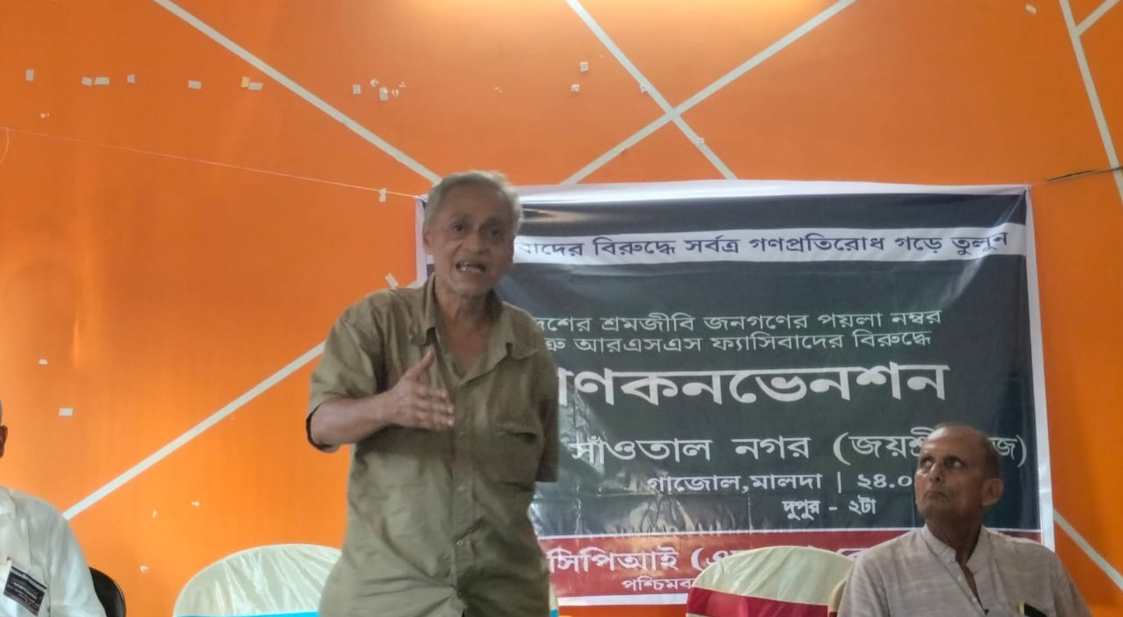 A mass convention was held on 24th September, 2025 in Malda Gazole at the call of the West Bengal State Organizing Committee of CPI(M-L) Red Star, calling for mass resistance against the fascist RSS/BJP. Farmers and working people from various villages participated in this convention. Leaders of various leftist parties were present at the convention. Comrade Chandrakanta Das, Malda District Secretary and State Organizing Committee Member of CPI(M-L) Red Star, Comrade Shankar, Politburo Member of the Party, Comrade Nuhu, Malda District Committee Member, Comrade Ranjit Majumdar, State Organizing Committee Member spoke in the Convention. Besides, Comrade Sadhu Tudu spoke on behalf of CPIM, Comrade Shiben Sarkar on behalf of CPIML, Comrade Nabendu Chatterjee on behalf of CPIML New Democracy, Comrade Ibrahim Sheikh on behalf of CPIML Liberation and Swarupanand Pandey on behalf of RSP.