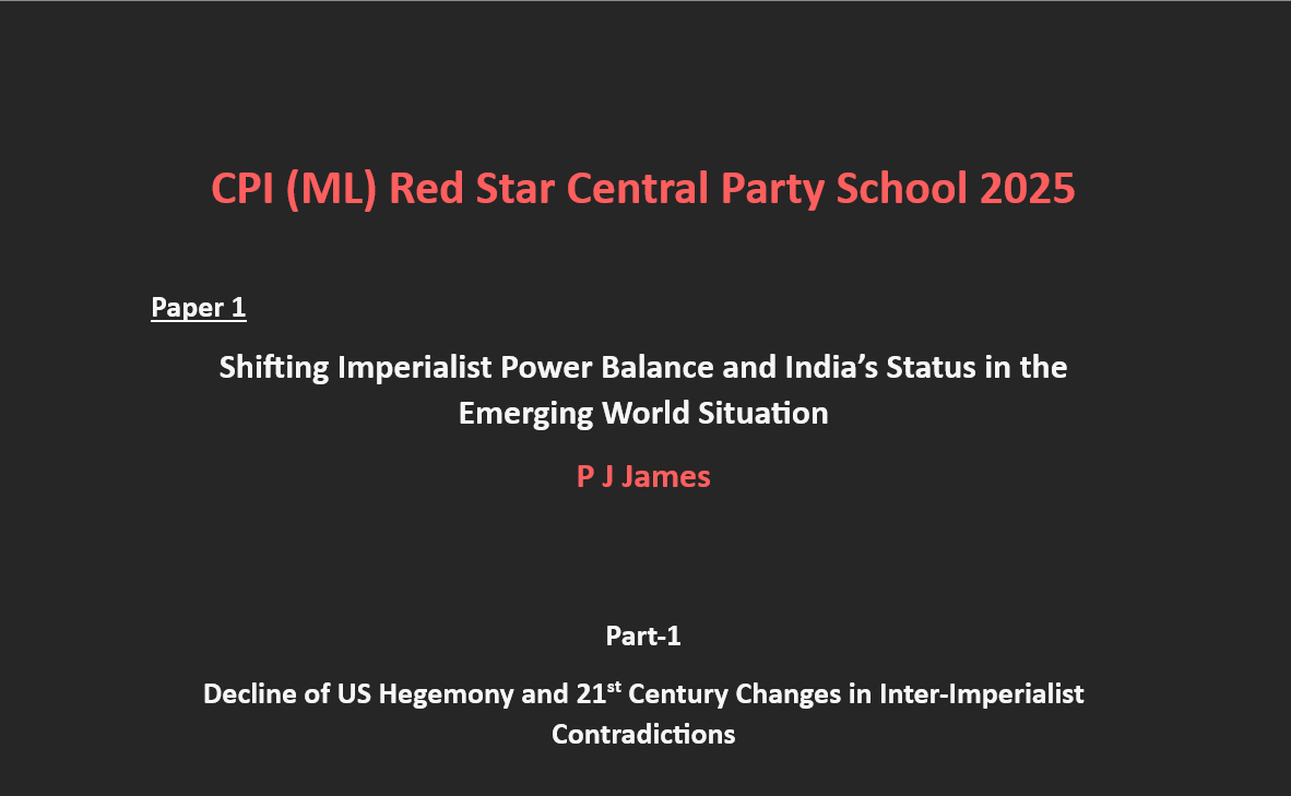 It is not intended here to go into a detailed analysis of the political-situation of India. However, one thing is to be stressed: on account of Modi regime’s pro-American, Islamophobic and neofascist orientation towards oppressed nations and peoples, globally, it is totally in an isolated position, though Godi media portray it otherwise. India’s expansionist and big-brotherly approach to neighbouring countries is already much discussed. At the same time, being a junior partner of US in latter’s machinations against China, India has been purposefully avoiding all trade agreements and treaties with ASEAN and RCEP (Regional Comprehensive Economic Partnership), solely because of the involvement of China in them. Take, for instance, the case of 10-member ASEAN with which India under the Manmohan government, more or less, had a good trade relationship. But under US pressure and accusing ASEAN a “B-team of China”, Modi regime cut off all relations with it in 2021. Same was the case with 15-member RCEP (which together with ASEAN includes China, Japan, South Korea, Australia and New Zealand. Obviously, it was the China factor that prompted Modi in 2019 to leave RCEP, which now accounts for 30% of global GDP and 30% of world population. If India had continued in these trade agreements, they could have been used as a shield against the Trumpian bullying tariffs by providing unhindered market access for India. In other words, Modi regime’s abject surrender before US imperialism has led to India’s shameful isolation from other countries, thereby putting heavier burdens on the working class, peasants, and micro, small and medium enterprises (MSMEs) where alone around 13 crore Indian people are engaged for sustenance. Modi’s hurried ‘GST Reform 2025’, the so called “two-slab tax revolution” to boost domestic demand to compensate for the loss of US market was intended to overcome the repercussions arising from Trump’s 50% punitive tariffs on Indian goods. Of course, these and related domestic issues that India has to confront in the days ahead in connection with the US imperialist policies need detailed analysis.